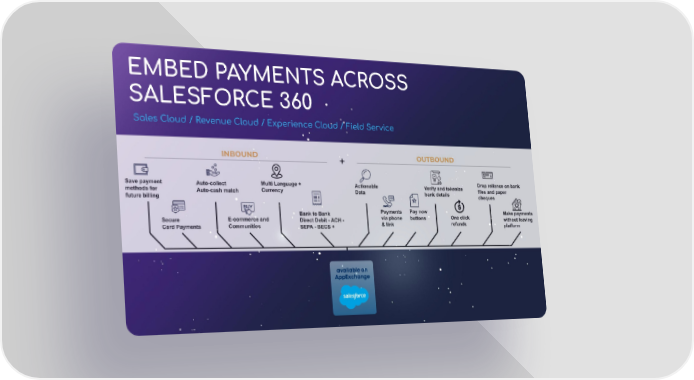 EMBED PAYMENTS ACROSS SALESFORCE 360 Sales Cloud / Revenue Cloud / Experience Cloud / Field Service