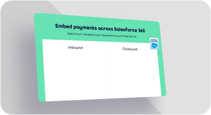 Payments for Salesforce | Microsite Page 1 Page 3Sales Cloud / Revenue Cloud / Experience Cloud / Field Service Inbound Outbound